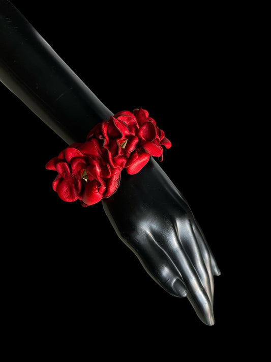 3D Floral Premium Leather Cuff in Black