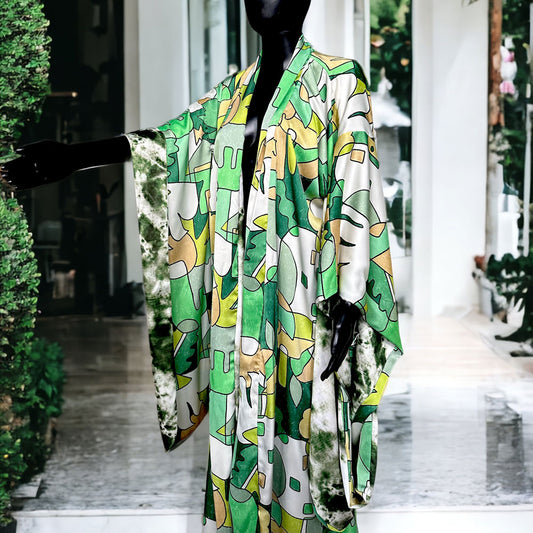 Abstract Green and Tie Dye Reversible Kimono