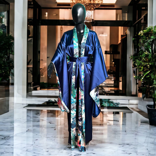 Abstract Sea and Navy Reversible Kimono
