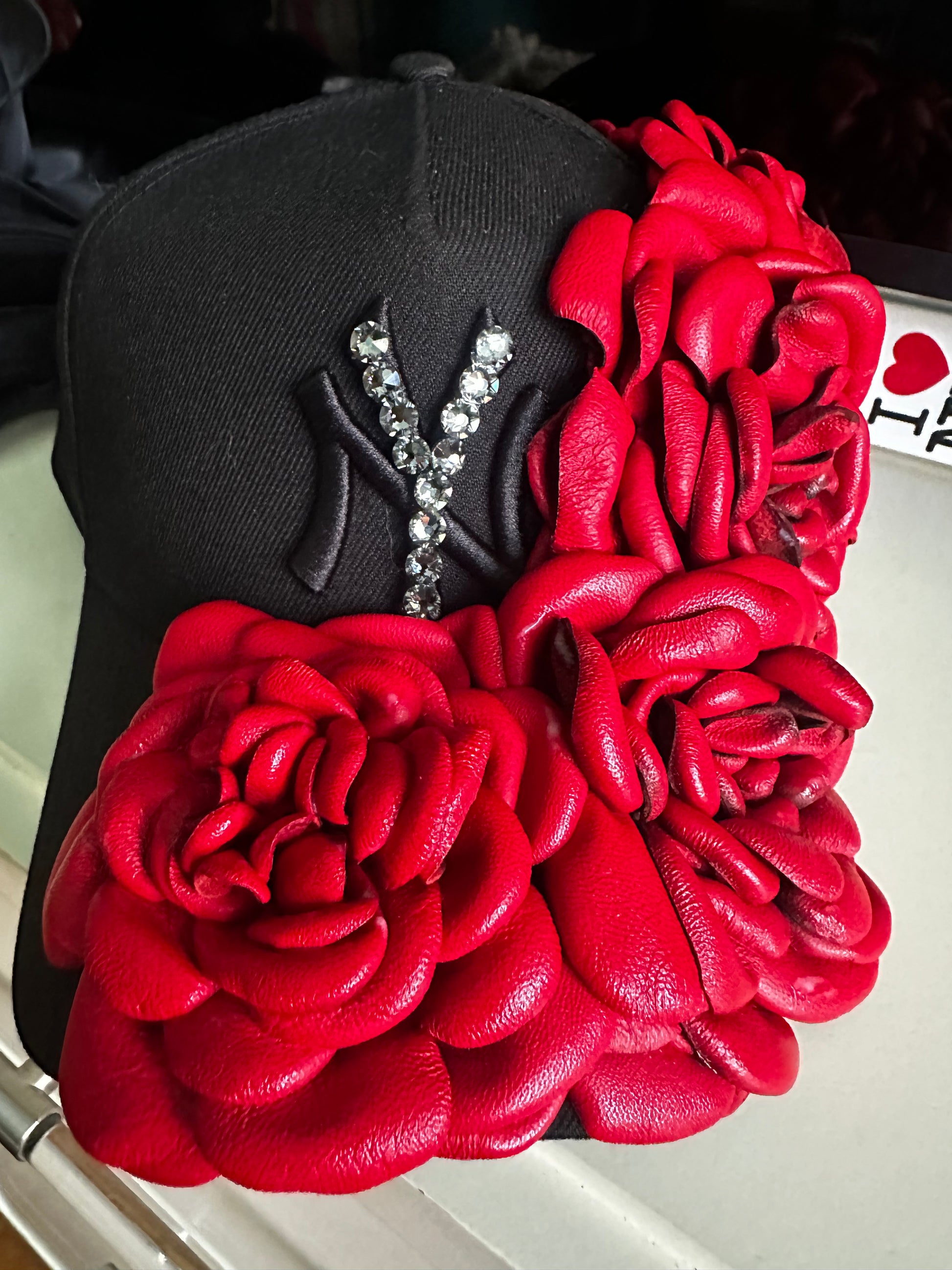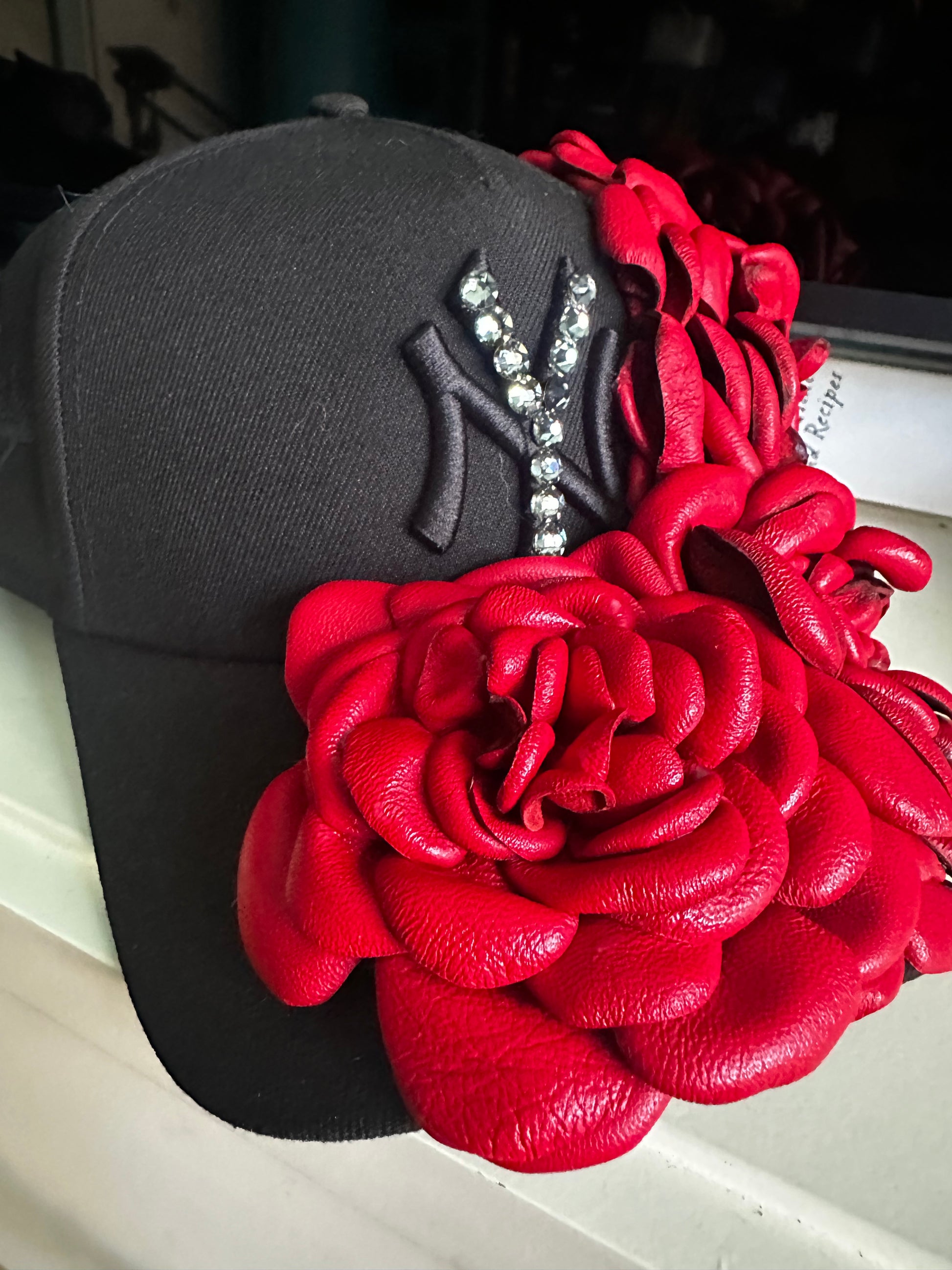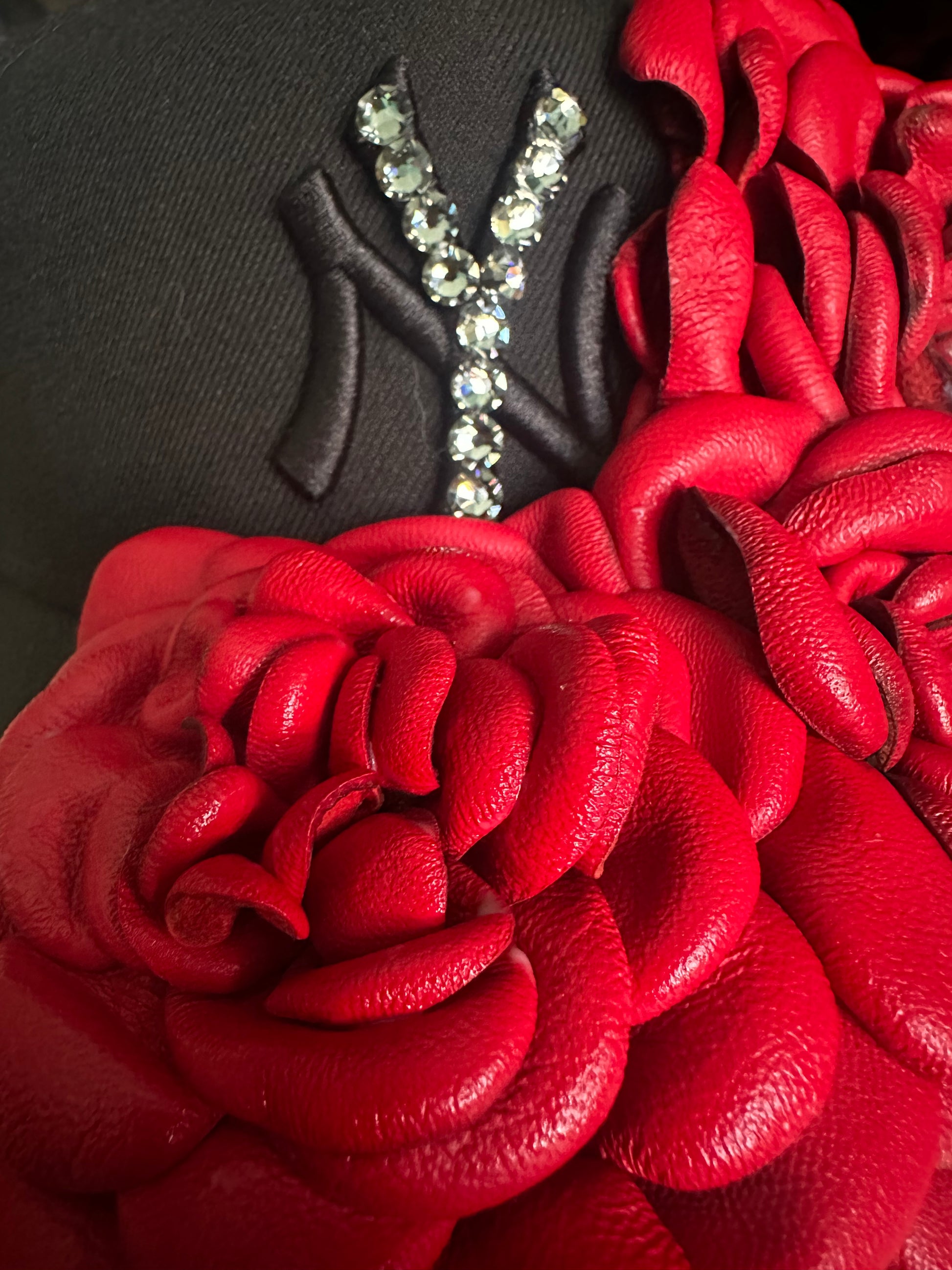 This Black on Black 9forty SnapBack is everything. The “Y” is adorned with black ice rhinestones and the red roses add that beautiful touch of elegance and edge. Be ready when they holla …. “yo ma”!! Just like NY!!!