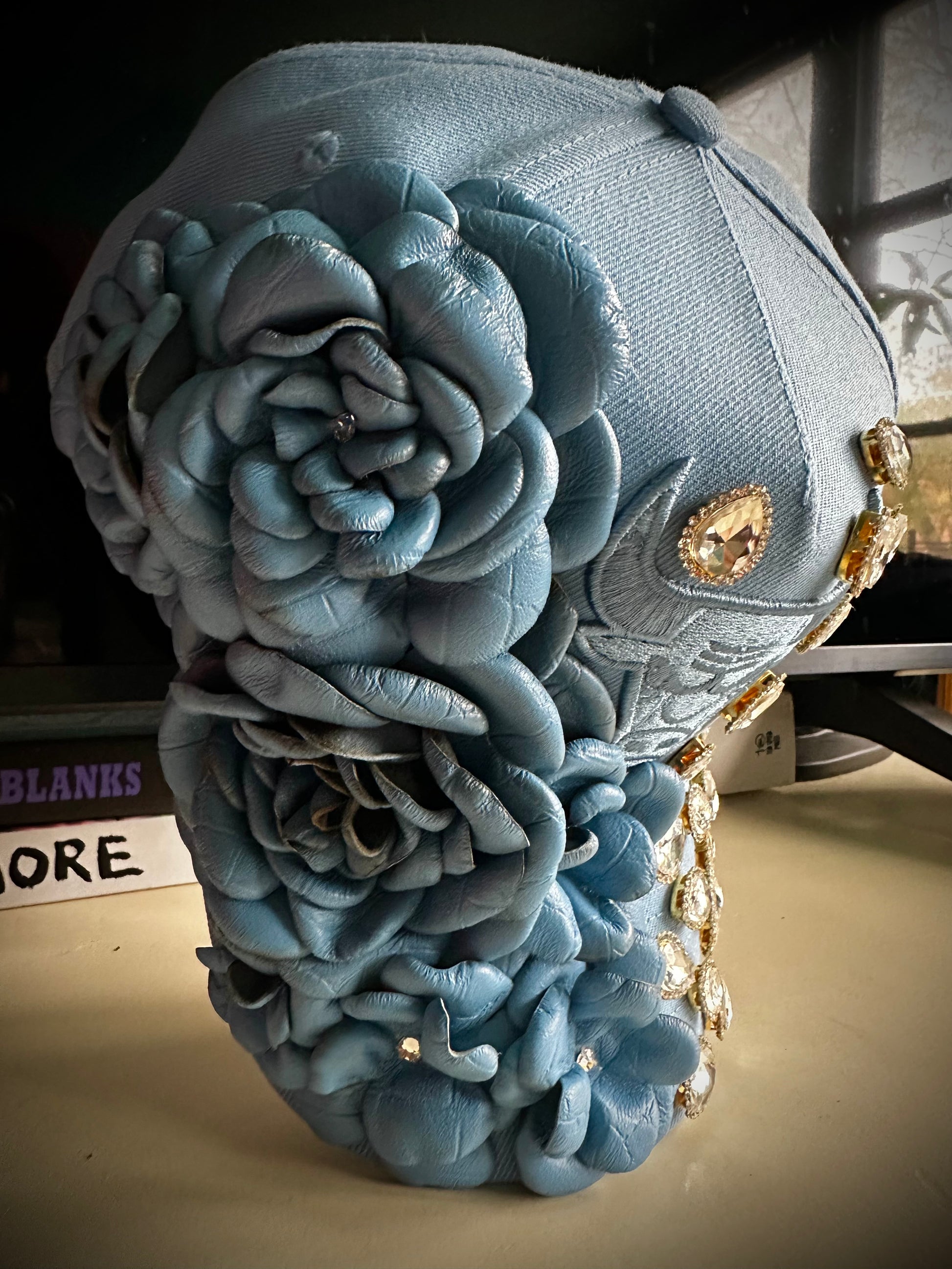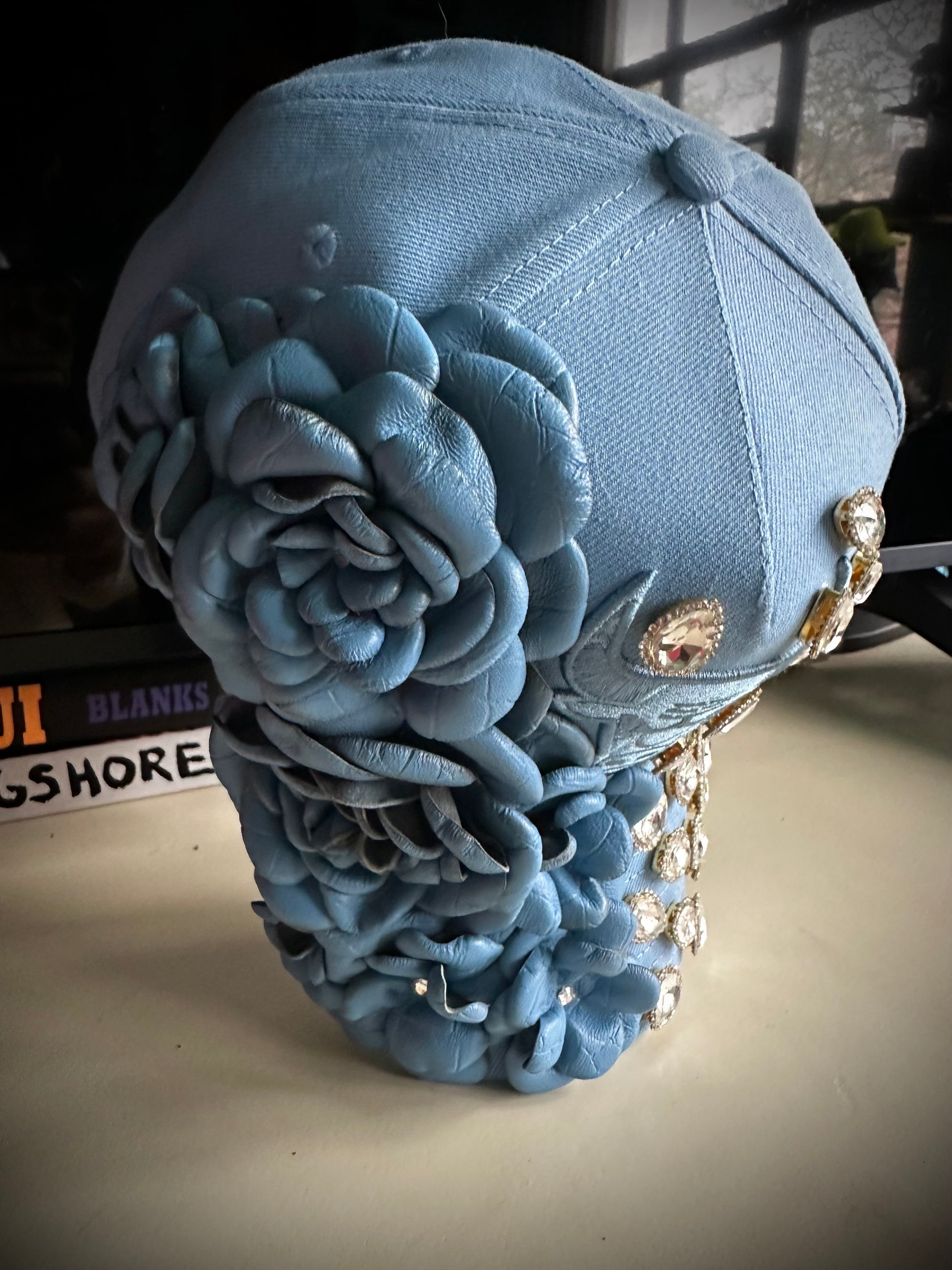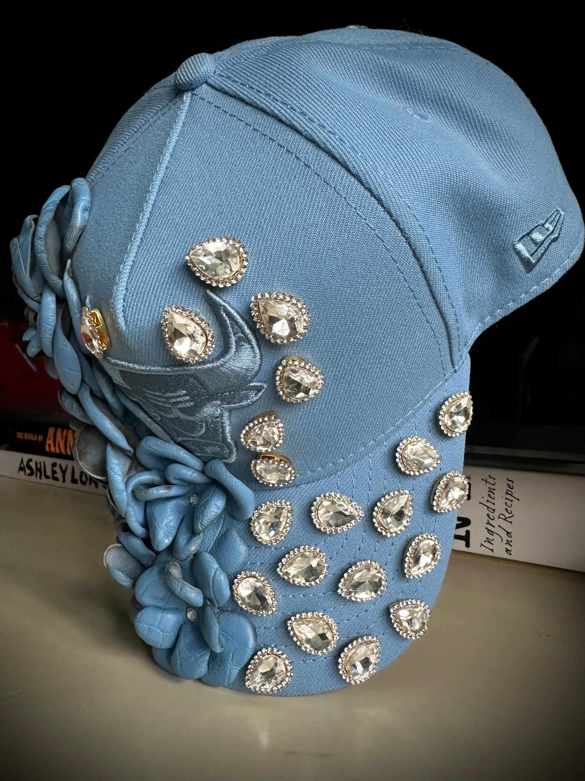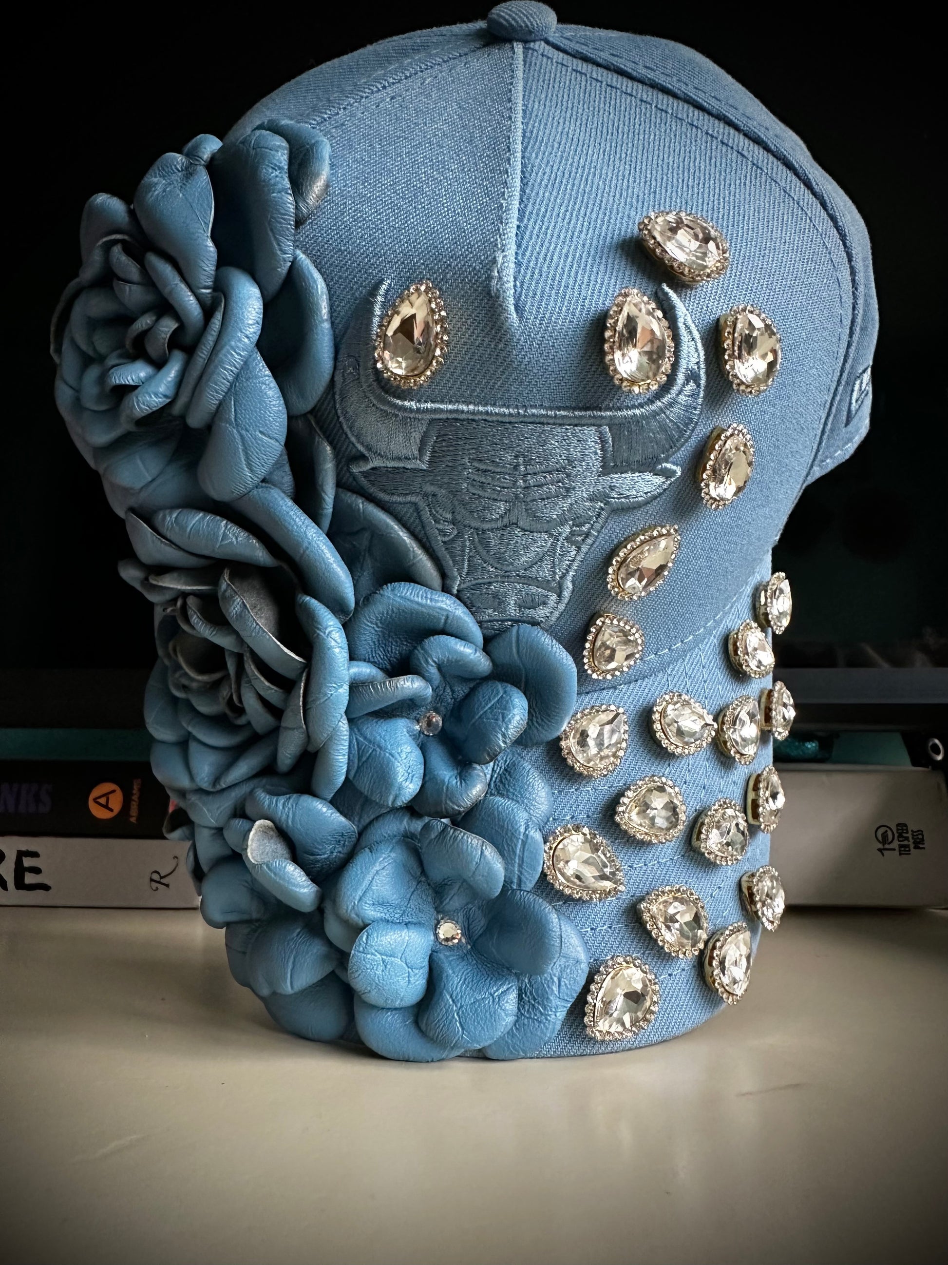 This beautiful Chicago Bulls blue SnapBack with blue leather textured roses and large rhinestone crystals represent the CHI Town vibe!