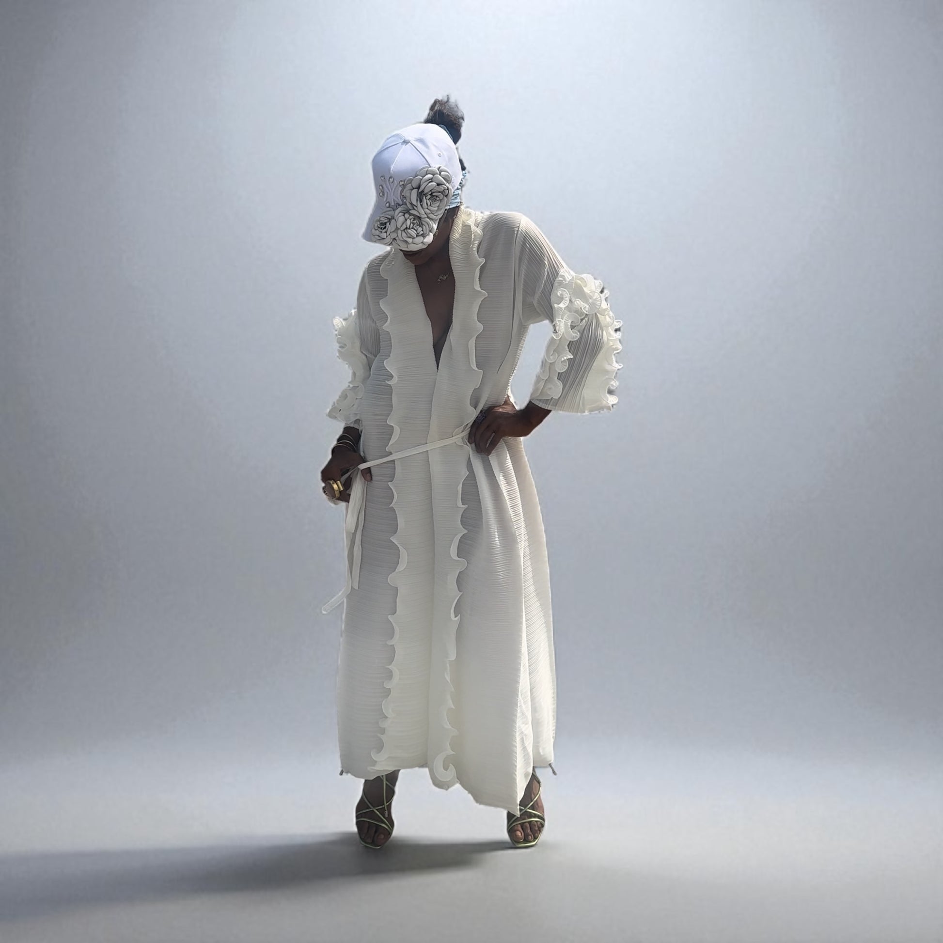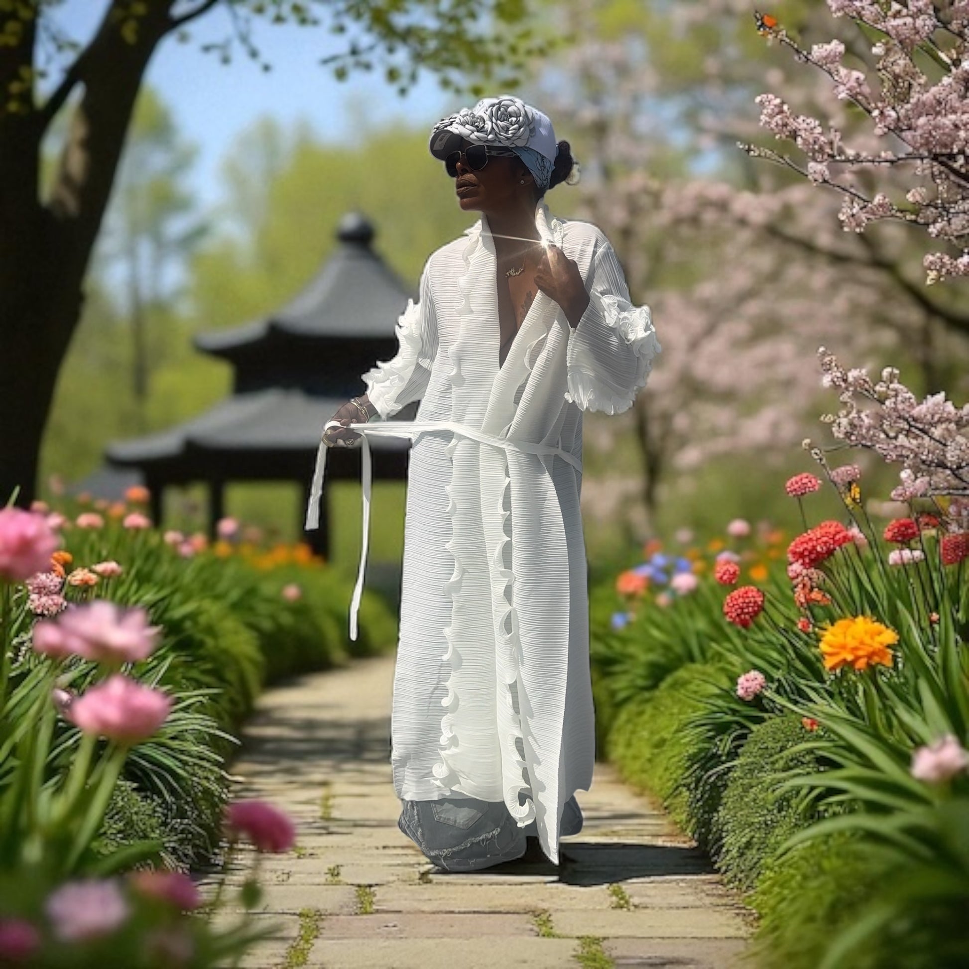 Ruffled White dress perfect for a summer night or a beautiful garden party. Elegant dressed up or down.